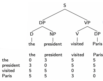 - if we can move vectors such that IP increasingly reflects hierarchical distances, vectors represent both words AND syntax trees through interdistances